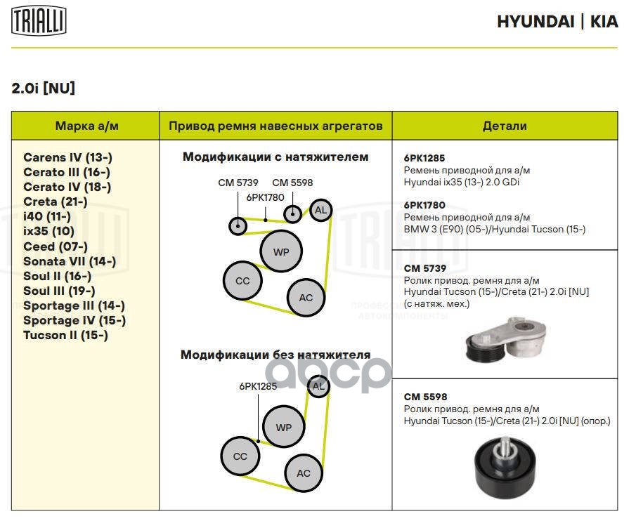 Ролик приводного ремня Hyundai Tucson 15-, Creta 21- 2.0i (NU) с натяж. мех. Trialli CM 5739 252812J001;252812E300;252812E350;T39420;1290D3;SR1212;3199SR;20R0519OYO;