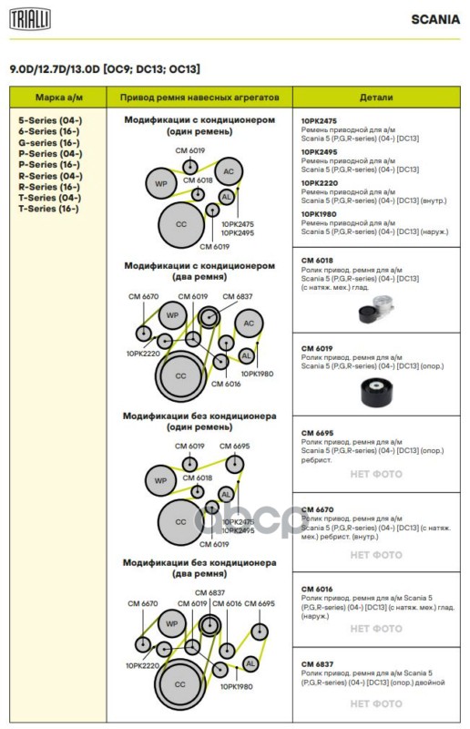 Купить запчасть CM6018 Ролик привод. Ремня Scania 5 (P,G,R-series) (04-) [DC13] (с натяж. мех.) глад. (CM 6018) с доставкой по России.