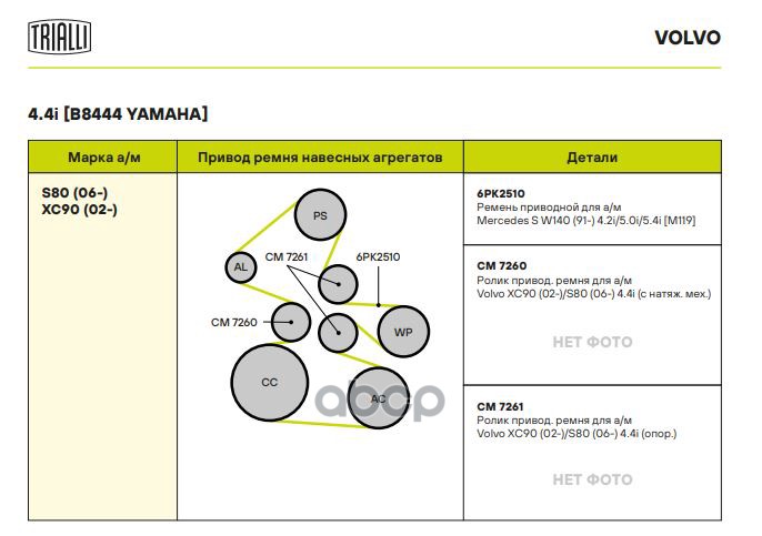 Купить запчасть CM7260 Ролик привод. ремня Volvo XC90 (02-)/S80 (06-) 4.4i [Yamaha] (с натяж. мех.) Trialli с доставкой по России.