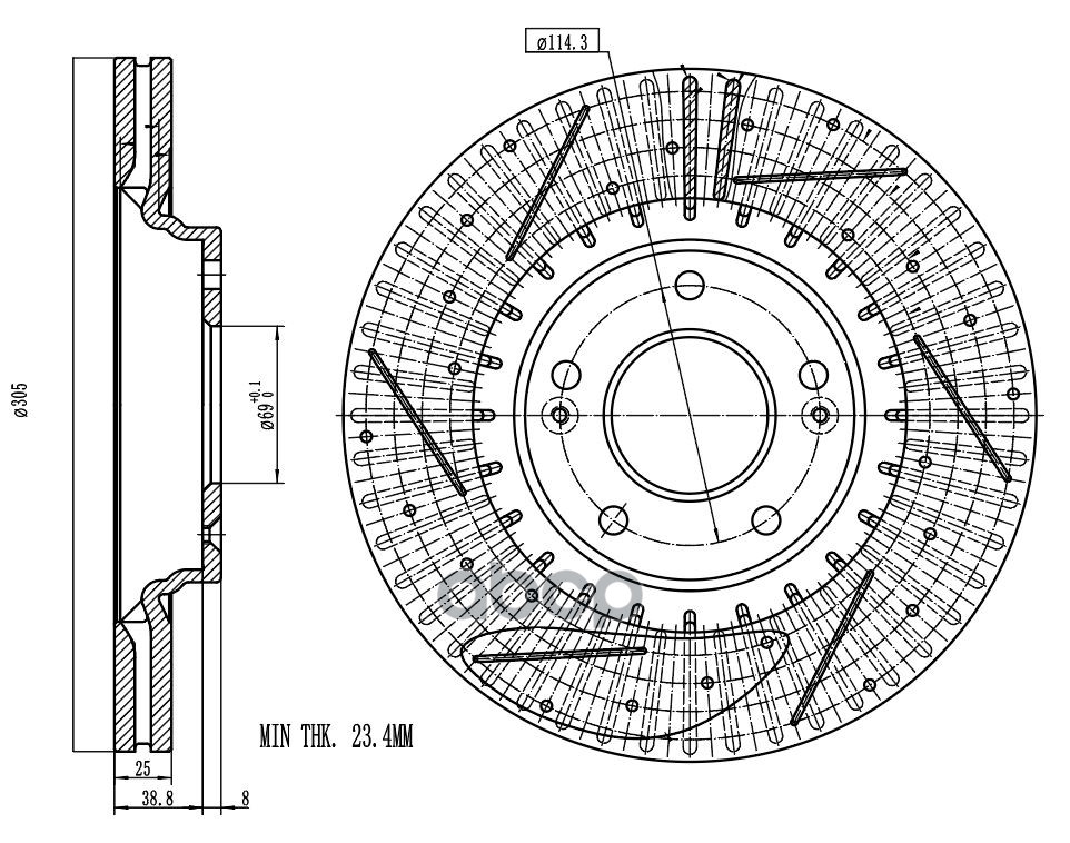 Диск тормозной KIA SPORTAGE IV 16-/HYUNDAI TUCSON II 15- пер. D 305 (перф/слот/о
