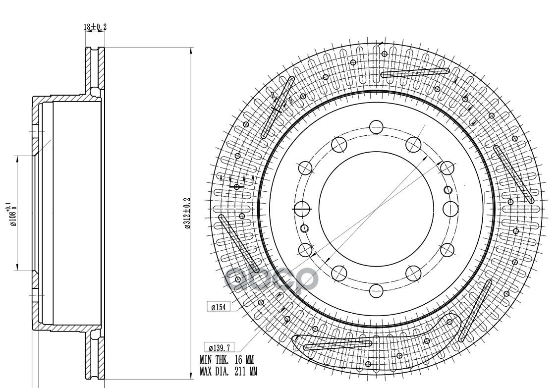Диск тормозной для автомобилей Toyota Land Cruiser Prado (09-) d=312 PRO (перфорированный / слотированный / окрашенный) | зад | TOYOTA LAND CRUISER PRADO (_J15_) 4.0 V6 VVT-i (GRJ150_, GRJ125_, GRJ150) Closed Off-Road VehicleTOYOTA LAND CRUISER PRADO (_J1