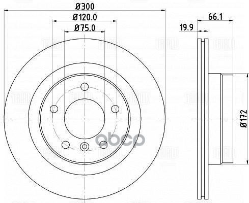 Диск тормозной BMW 3 (E90) (05-)/1 (E81) (04-) зад. d=300 (окраш.) Trialli DF 261005 34216855007;34216764651;6764651;6855007;