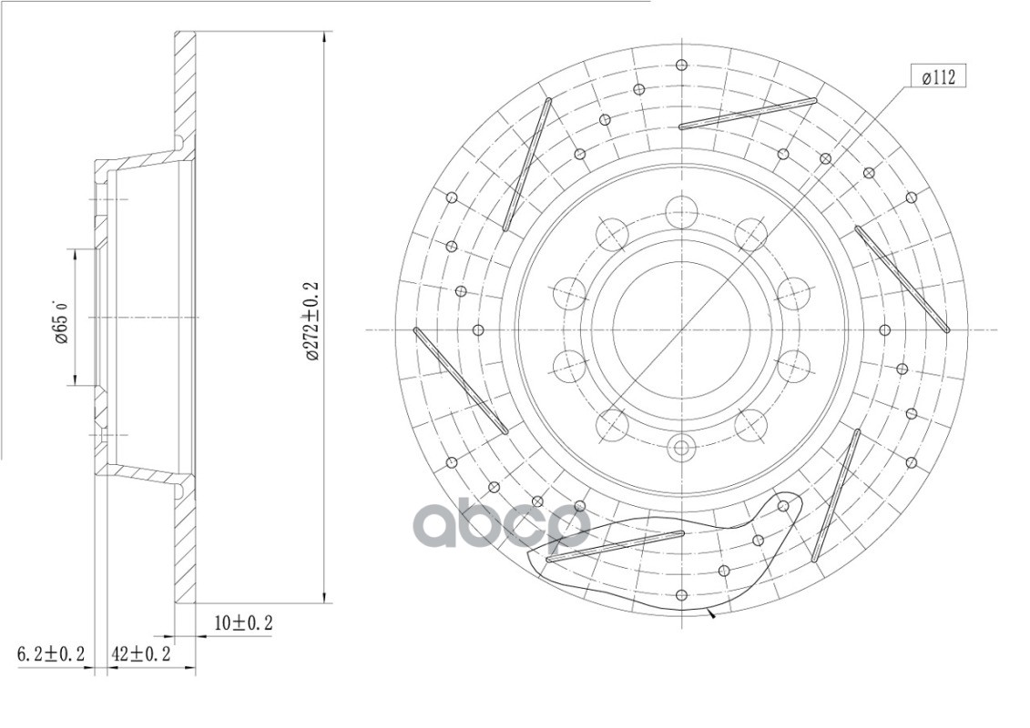 Наименование: Диск тормозной VAG Octavia A7 (13-)/ Golf VII (12-) зад. d=272 (перф/слот/окраш) Trialli DF 2829s 6R0615601;1K0615601AA;5Q0615601D;