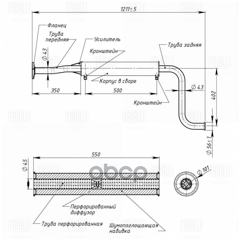 Наименование: Резонатор ВАЗ 21082 под катализатор короткий алюминизированный Trialli 21082-1200020;21082120002000;21082120002081;21082120002083;210821200020;21082120002000;21082120002081;21082120002083;