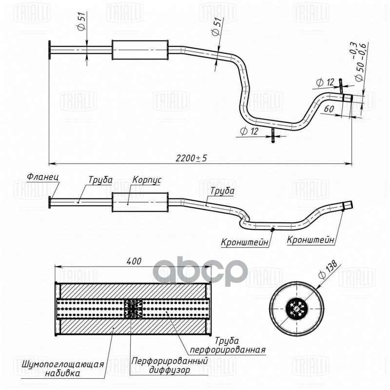 Резонатор Ford Mondeo IV 07- 1.6i/2.0i алюминизированная сталь Trialli EAM 1006 1476617;1510246;1377427;1460210;1465651;1457643;1431186;289449;8374;827;24127;
