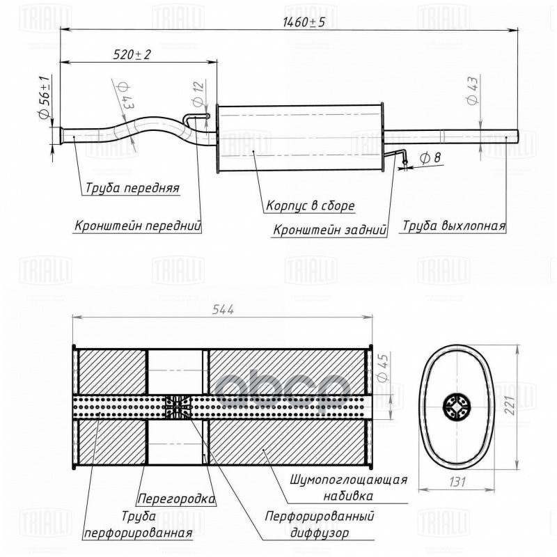 Глушитель основной ВАЗ 2110 1.6 алюминизированный Trialli 21100-120001183;21100120001020;21100-120001181;21100120001183;21100120001020;21100120001181;