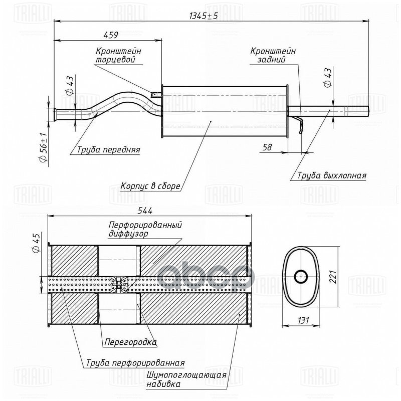 Наименование: Глушитель основной ВАЗ 2112 алюминизированный Trialli 2112-1200010;21120120001081;21120120001083;21120120001181;21120120001183;21121200010;21120120001081;21120120001083;21120120001181;21120120001183;