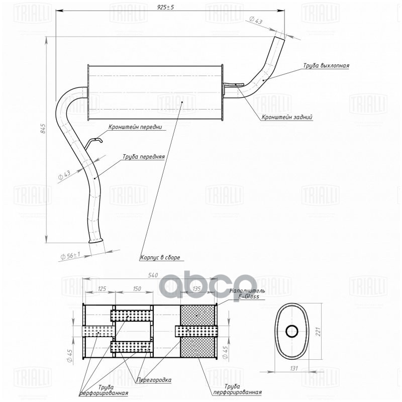 Глушитель основной ВАЗ 2123 с/образца -03 с гусаком Trialli 2123-1200010 21231200010;212301200010000;21230120001000;212301200010200;