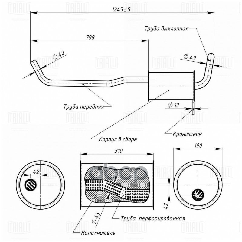 Глушитель основной ВАЗ Lada Xray 1,6/1,8 алюминизированная сталь Trialli 200109161R 200109161R;CBD130014;