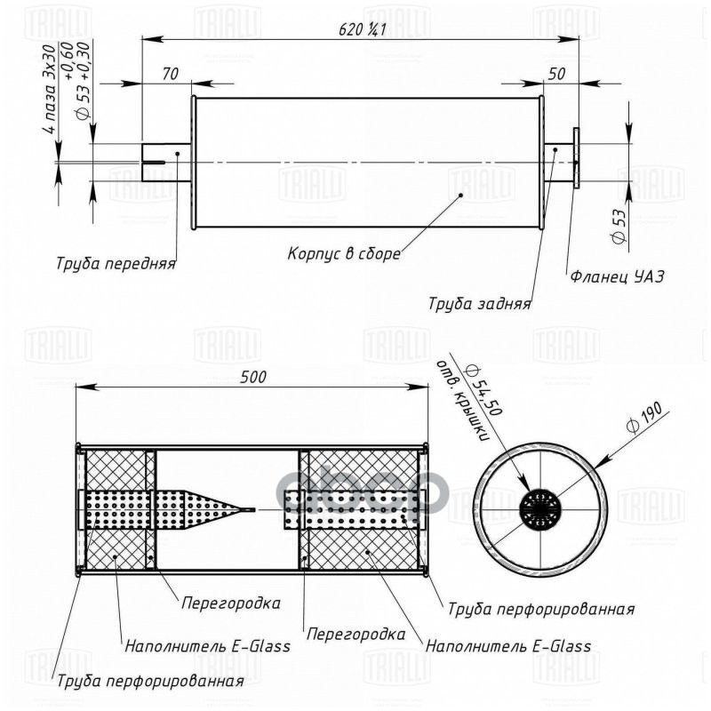 Наименование: Глушитель основной УАЗ 3151 Хантер (дв. ЗМЗ 40904) (средний) алюм. сталь Trialli 31511201010 31511201010;