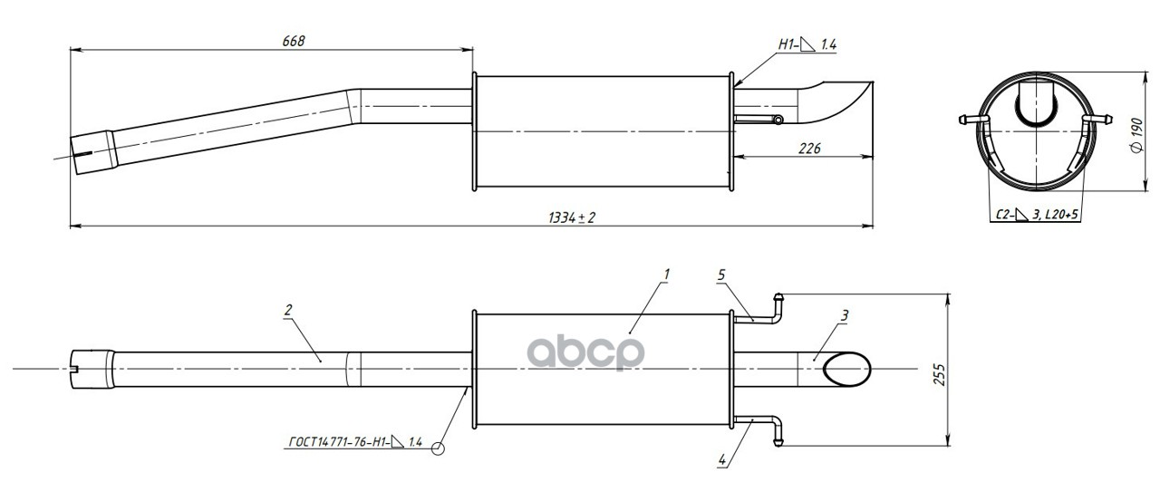 Наименование: Глушитель для а/м Ford Transit (13-)/Transit Custom/Tourneo (12-) 2.2d осн. короткий (алюм. сталь) (