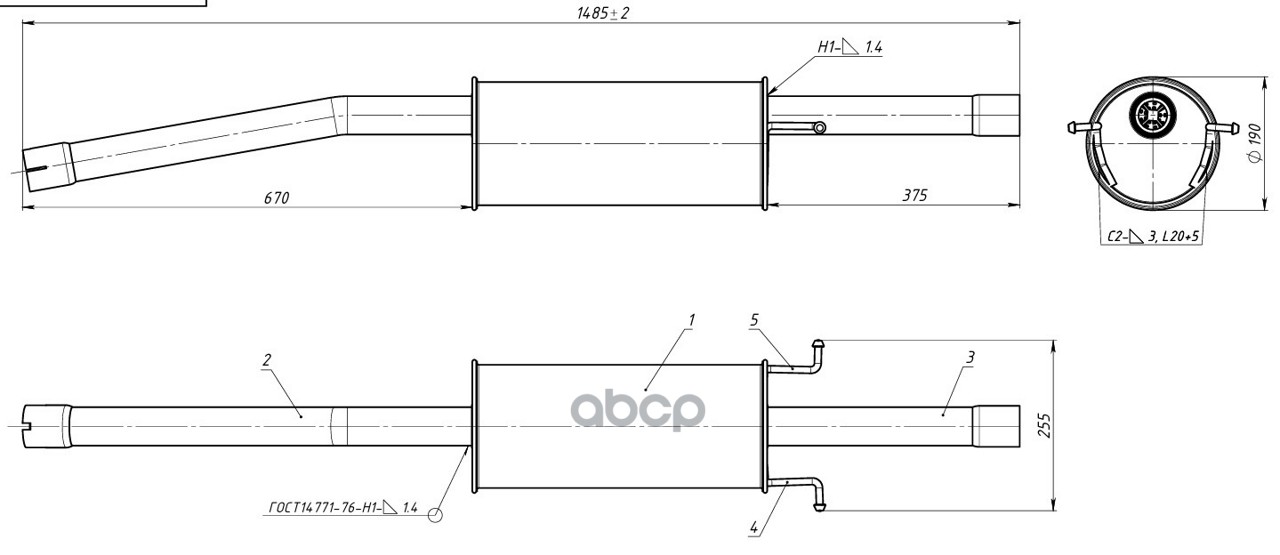 Наименование: Глушитель для а/м Ford Transit/Transit Custom/Tourneo (12-) 2.2d осн. длинный (алюм. сталь) (EMM 120