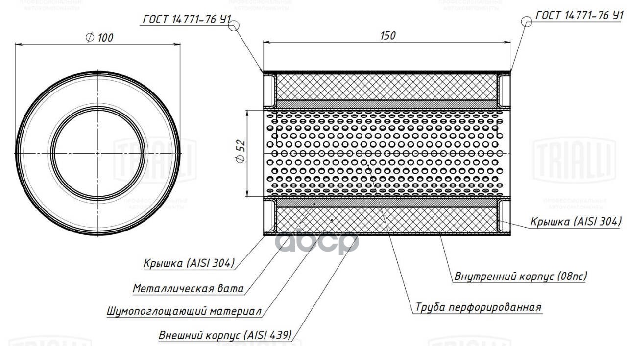 Бренд: Trialli, артикул: ESM10015050P, Пламегаситель универсальный 100/150-50 (нерж. сталь) (ESM 10015050p) ESM 10015050p 10015054;PLIN129;. |