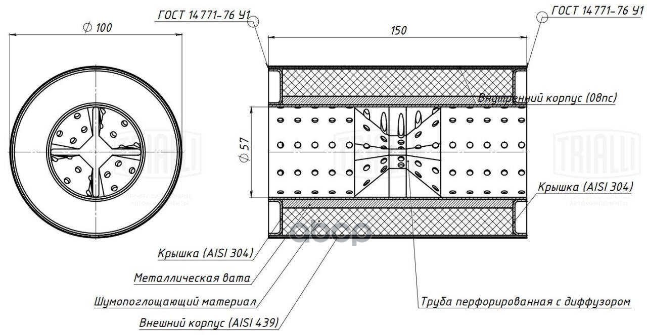 Бренд: Trialli, артикул: ESM10015055D, Пламегаситель универсальный 100/150-55 с перф. диффузором. |