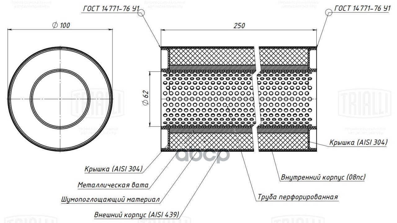 Бренд: Trialli, артикул: ESM10025060P, Пламегаситель универсальный 100/250-60 (нерж. алюм. сталь) 100/250-60 (нерж. алюм. сталь). |