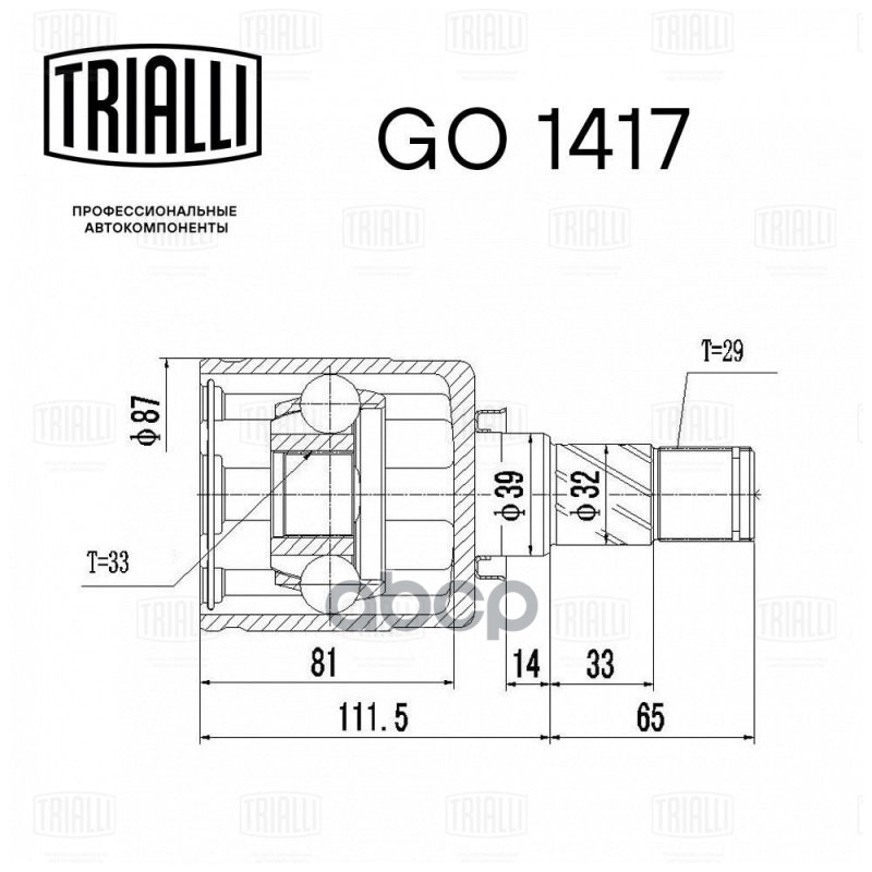 ШРУС Nissan X-Trail T31 08- MT внутренний левый Trialli GO 1417 39101JD24B;39711JG34B;39711JD24B;39101JG34B;0211MR20MTLH;NSILT3120MT;14066165;ST1523;ST1523;ST1309;