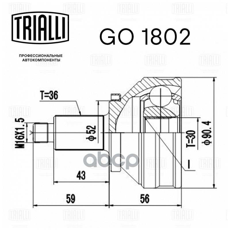 ШРУС VAG Polo Sedan RUS 09-; Rapid 12- Fabia 99- наружный (MT) 105Hp Trialli GO 1802 6Q0498099EX;6Q0498099E;6Q0498099B;1501414SX;861008;12211691;SK1414;21587;803024;303557;CO1225;16831;303557SETMS;151414;1004980118;G1S005PC;PCV1414;RU98099Q;75432S;JK03641