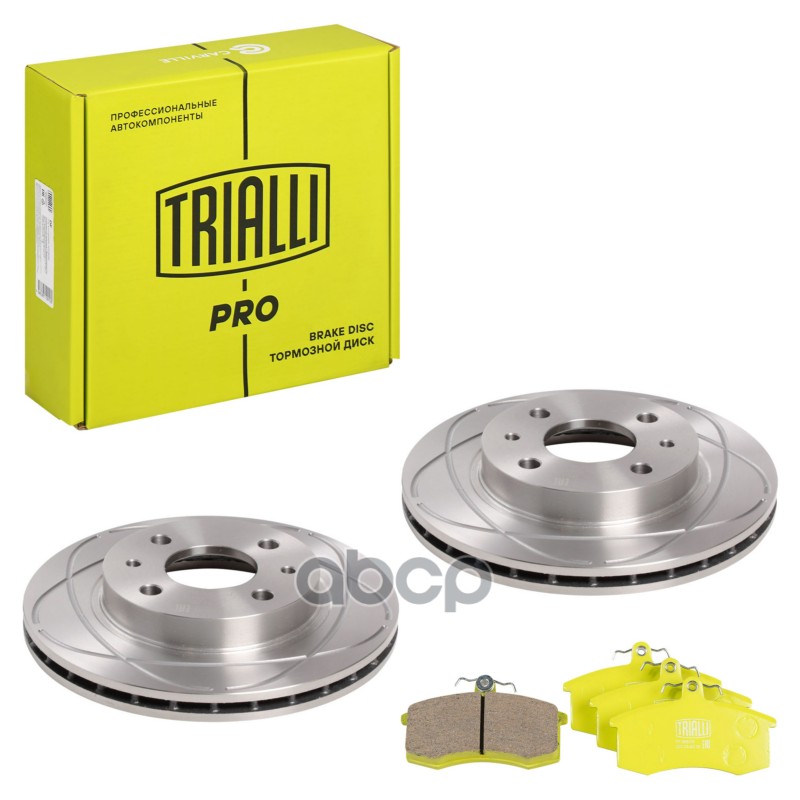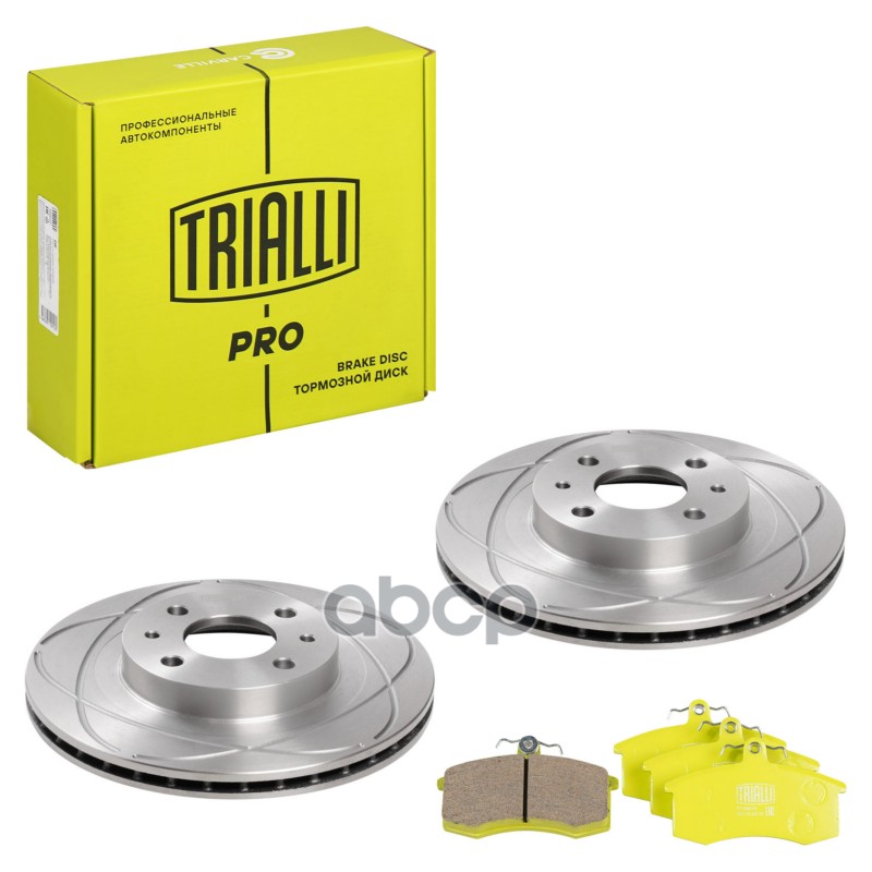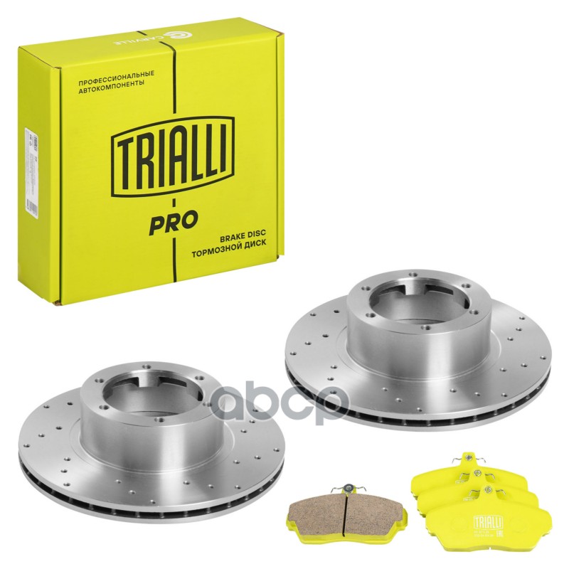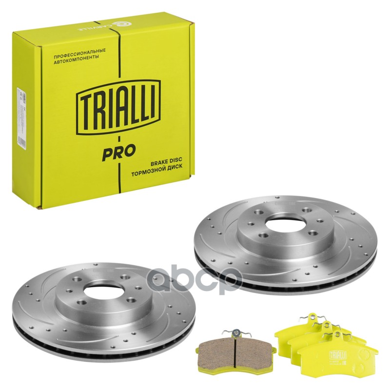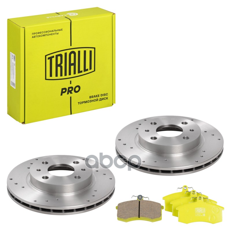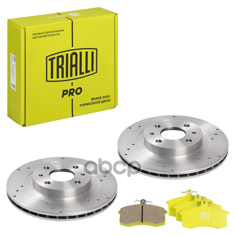 Комплект торм. дисков и колодок ВАЗ 2112 R-14 передних Trialli PRO перф + керам 21120350107000 21120350107000;21123501070;2112350107001;2112350107002;2112350107003;2112350107004;402065PA0E;402065PA0G;