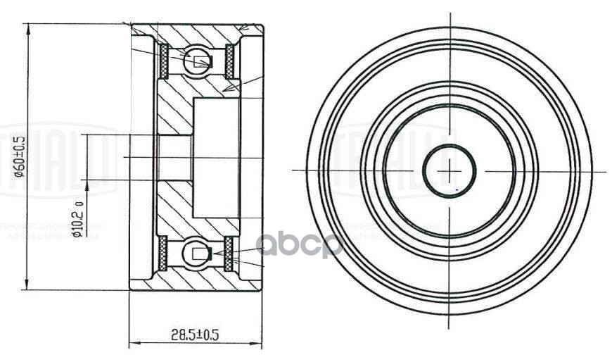 Ролик натяжной ВАЗ 2108 с/образца Trialli 2105-1006124;21051006118;21051006124;21051006118;V57201;ATB2063;19066;T41242;531 0102 20;2105-1006124-ST-PCS-MS;751ST;57201;VKM 18200;GT372.00;78 91 9066;KR5044;
