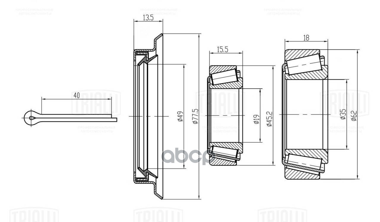 Подшипник ступицы ВАЗ 2101 наружный Trialli 2101-3103025 2101-3103025;21013103025;VKHB 2270;LM11949/10;NB701E;PW-P1305;
