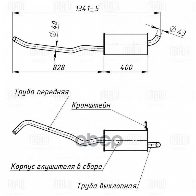 Глушитель основной ВАЗ 2190 алюминизированная сталь Trialli 21900-1200010 219001200010;21900120001081;21900120001083;21900120001000;