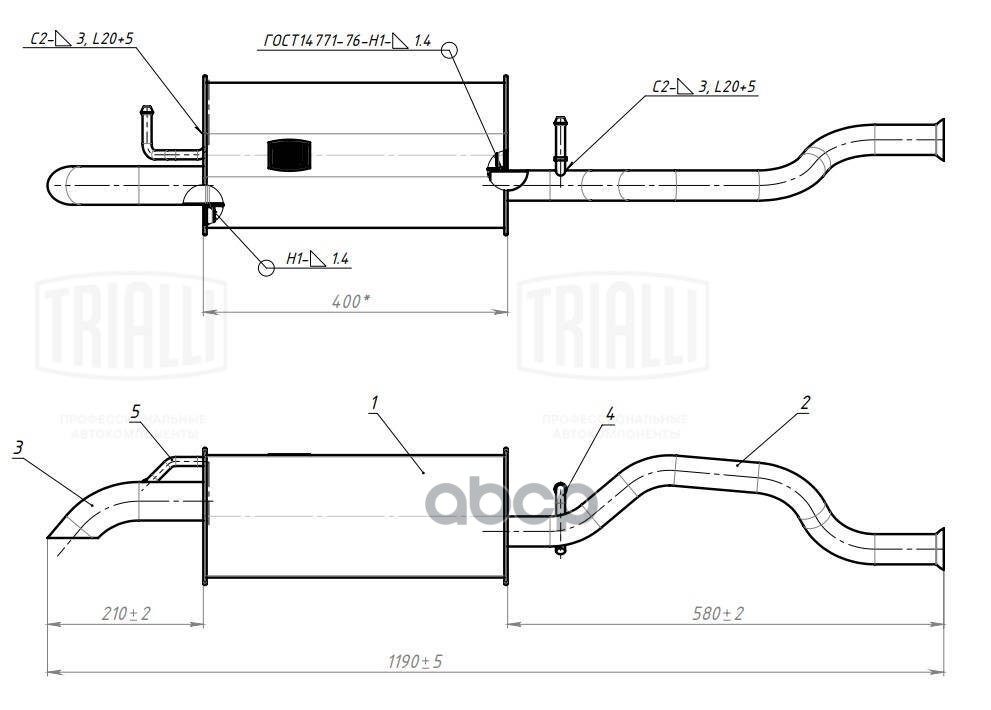 Глушитель Chevrolet Lanos 02- алюминизированная сталь Trialli 96182257;96290793;96350734;