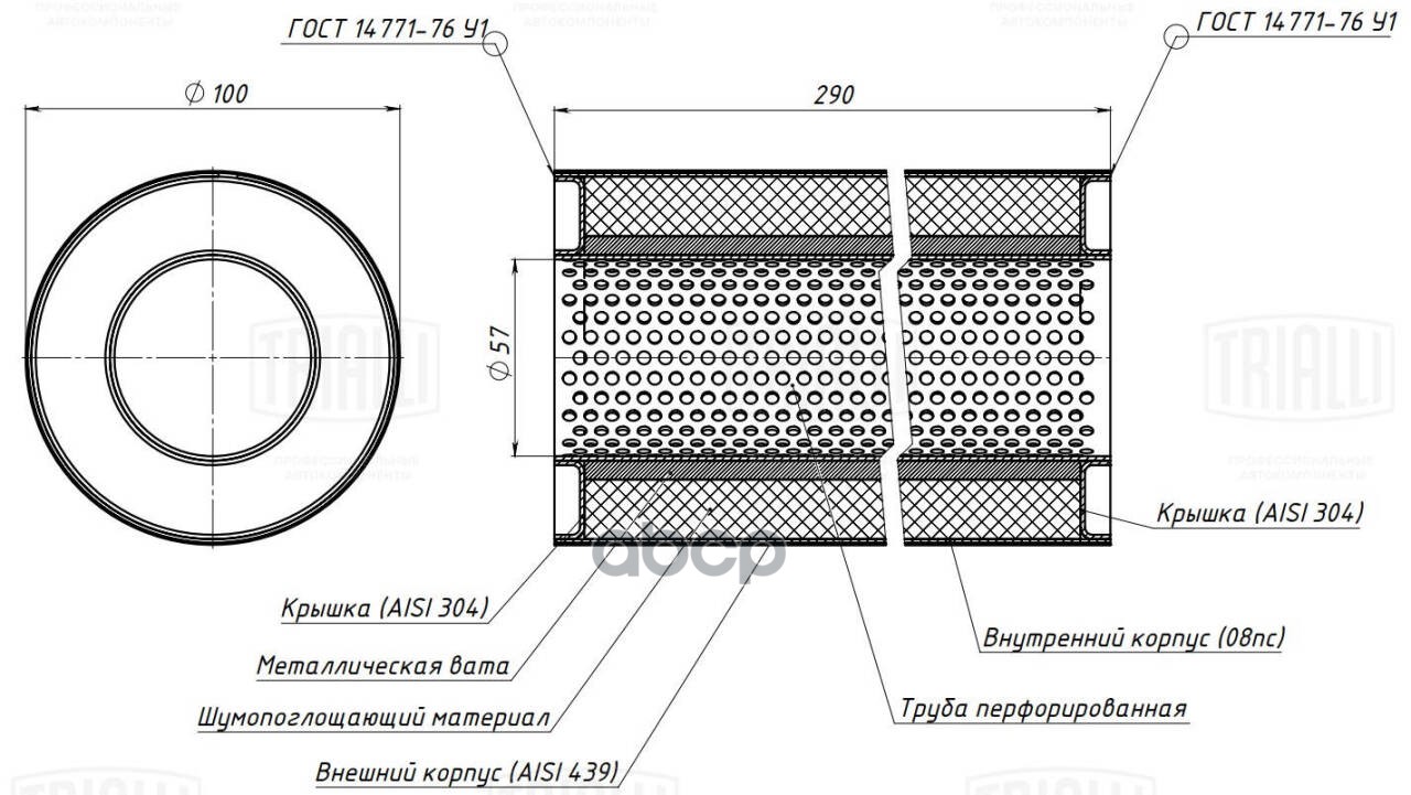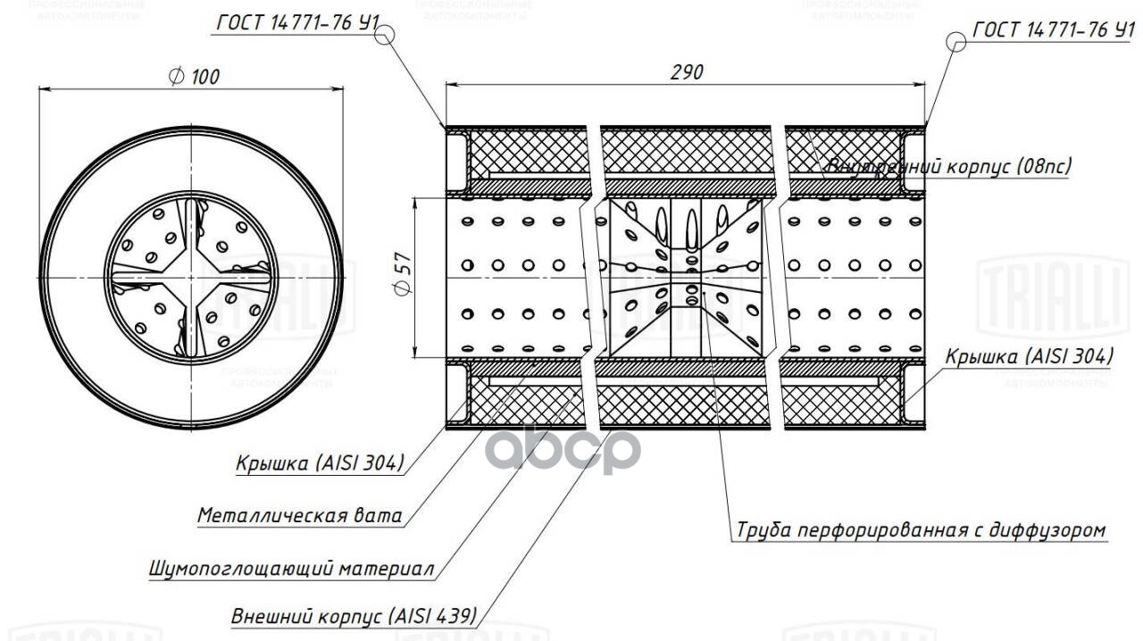 Пламегаситель универс. 100/290-57 с перф. диффузором (нерж. сталь) (ESM 10029057