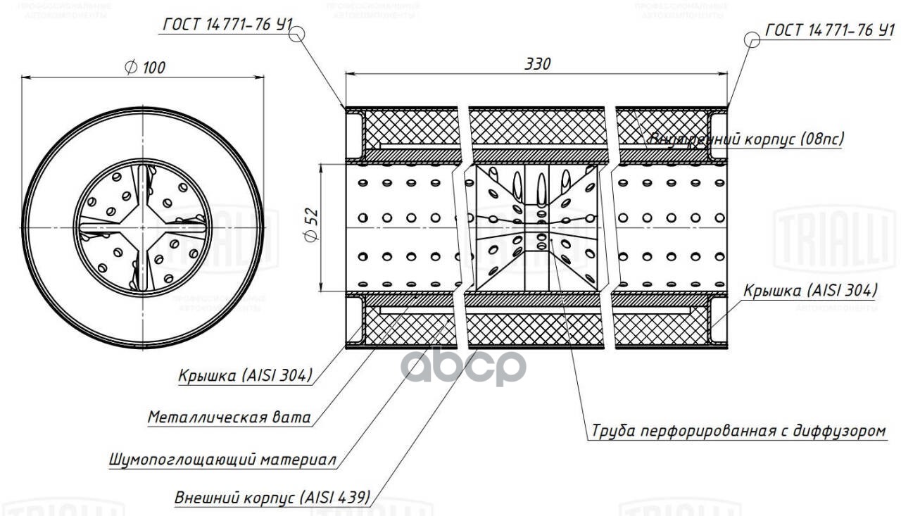 Пламегаситель универсальный 100/330-50 (нерж. алюм. сталь) 100/330-50 (нерж. алюм. сталь)
