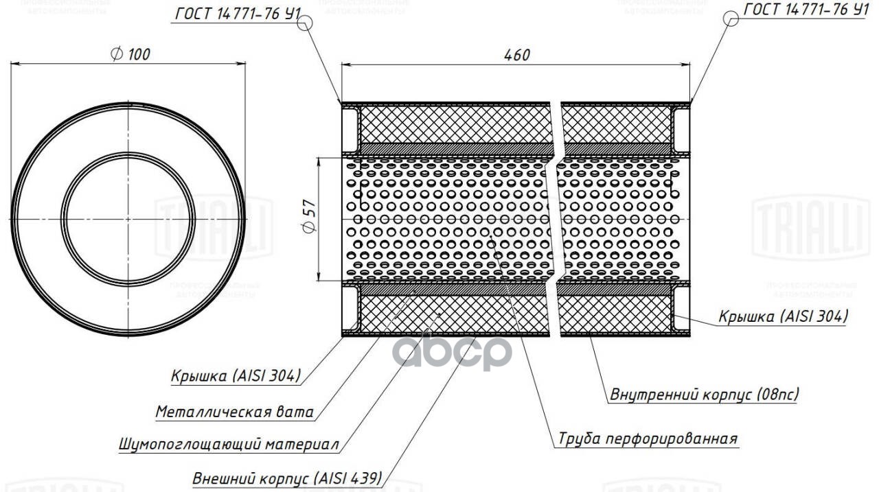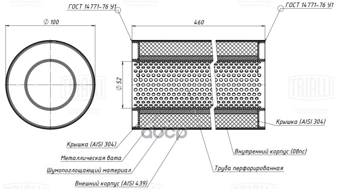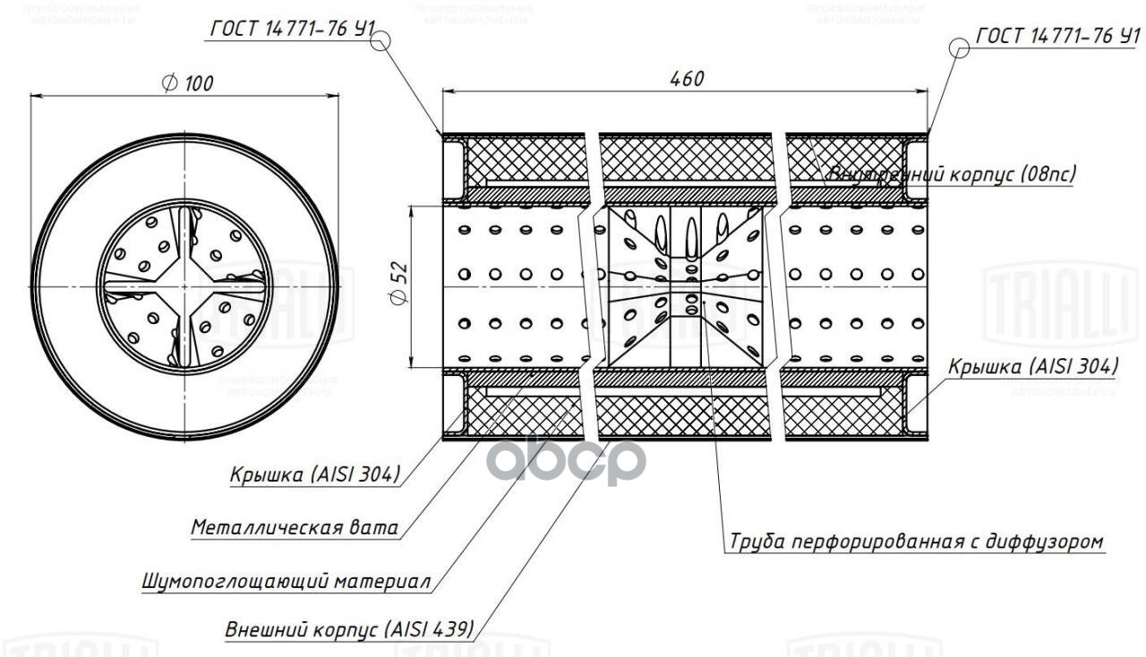 Пламегаситель универсальный 100/460-50 с перф. диффузором (нерж. алюм. сталь) 100/460-50 с перф. диффузором (нерж. алюм. сталь)