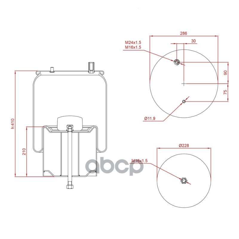 Подушка 4757NP01 со стаканом 1шп-шт.M24 по центру поршень стал 1отв.M16 MB Actro