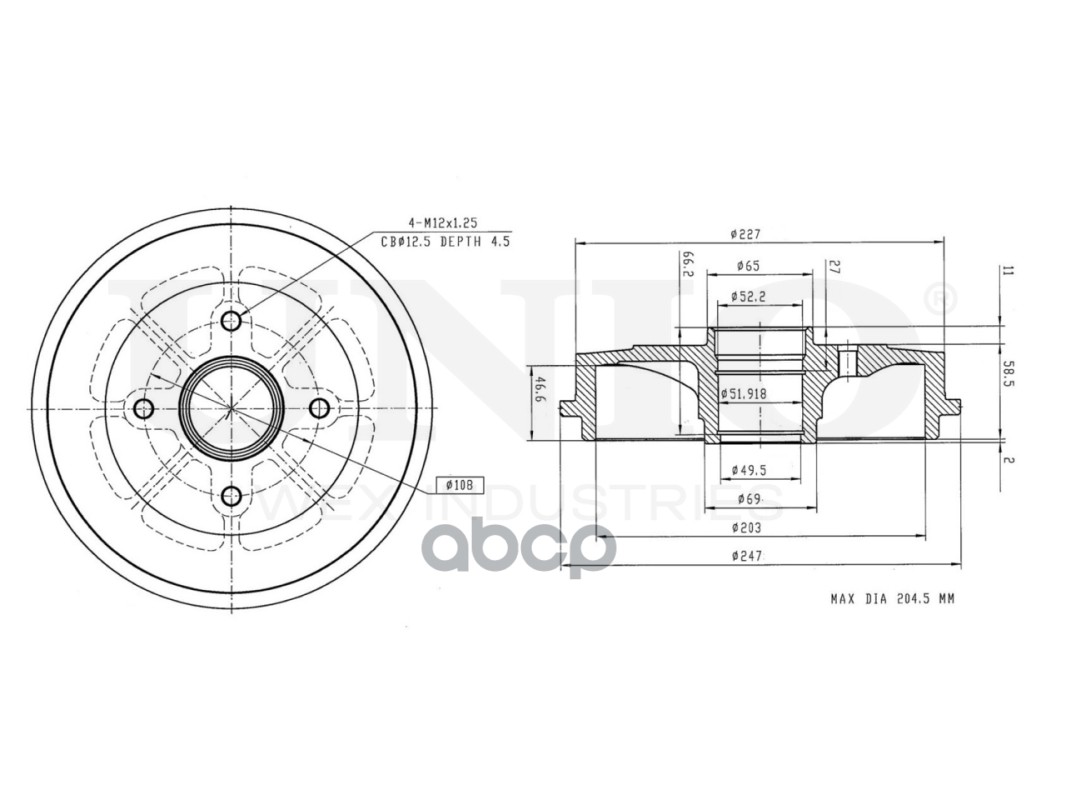 Наименование: Барабан тормозной задний Peugeot 206 98-, 106 II 96-, Citroen Saxo 96-