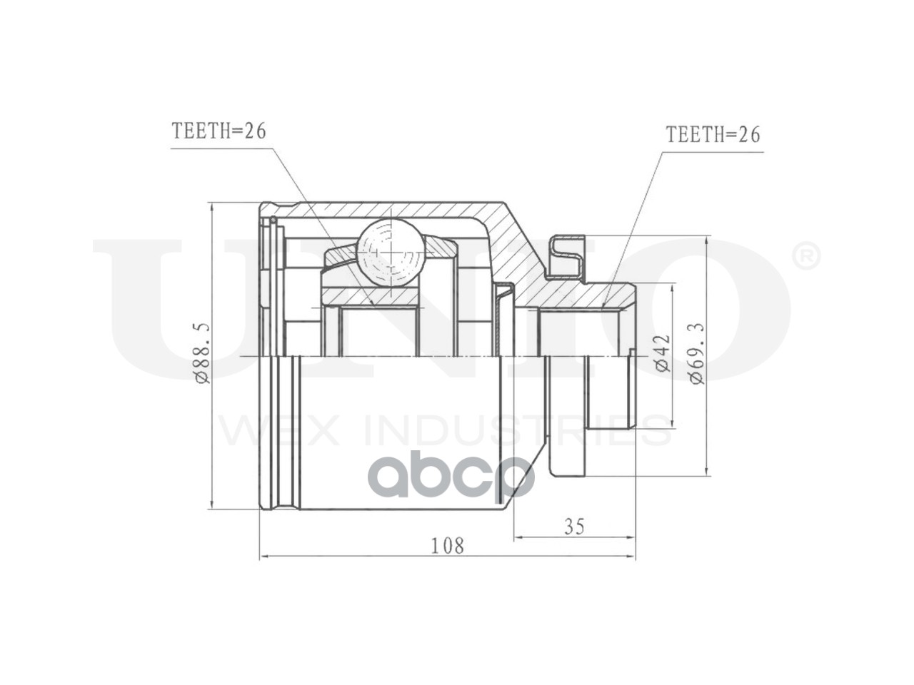 ШРУС внутренний правый Hyundai Santa Fe 00-, Sonata III,IV 98-, Kia Magentis 00- (МКПП/АКПП)
