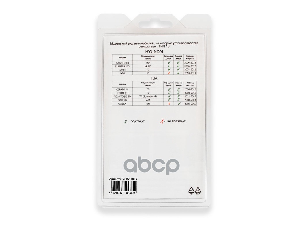 Наименование: Ремкомплект ПереднийЗадний тип 18 2 двери