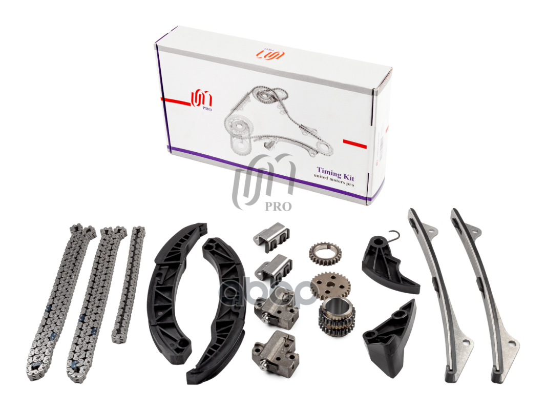 Комплект цепи ГРМ Kia/Hyundai G4KD/G4KE (1 цепь 180z+ натяжитель+ успокоители, звездочки КВ/РВ) (24321-25000) UM