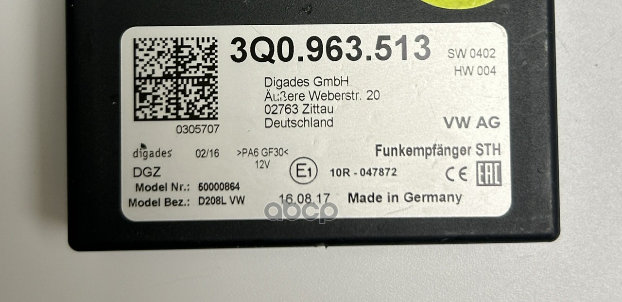 Купить запчасть 3Q0963513 БУ приёма сигнала автономного отопителя, шт с доставкой в Эль-Монте.