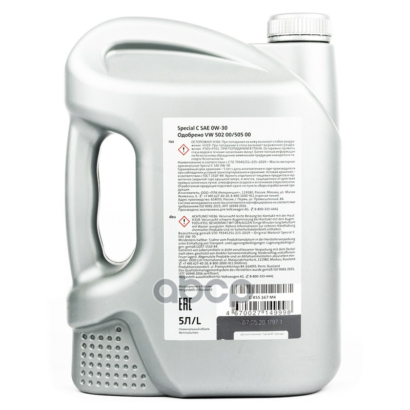 Наименование: VAG Special C 0W30 VW 502.00/505.00 5л G R55167M4