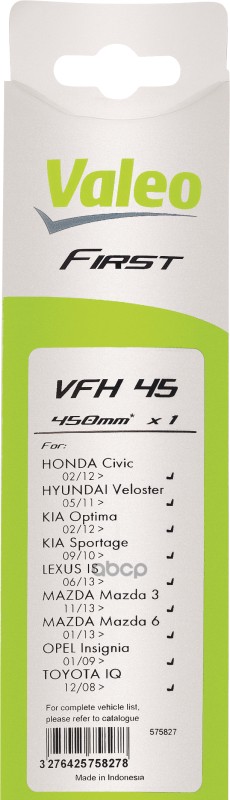 Бренд: Valeo, артикул: 575827, Щетка стеклоочистителя First Hybrid гибридная 450/18` (крючок) MITSUBISHI OUTLANDER III (GG_W, GF_W, ZJ) 2.4 4WD (GF3W) 10.2012 - <=> MAZDA 6 Saloon (GJ, GL) 2.5 01.2013 -.