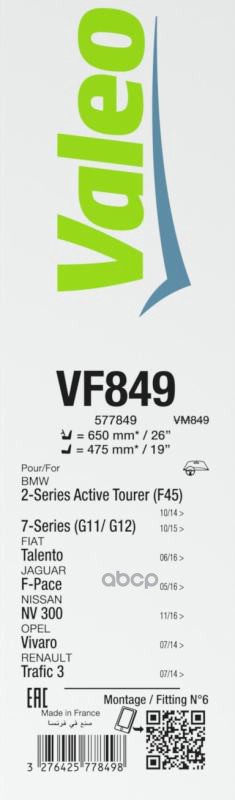 Бренд: Valeo, артикул: 577849, ЩЕТКИ СТЕКЛООЧИСТИТЕЛЯ.