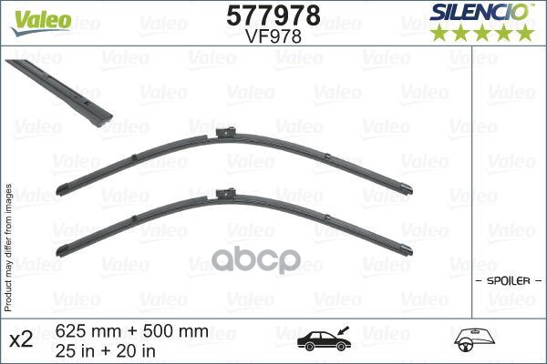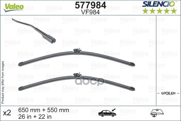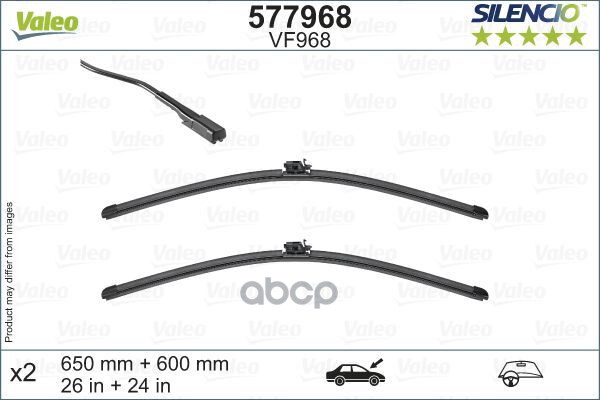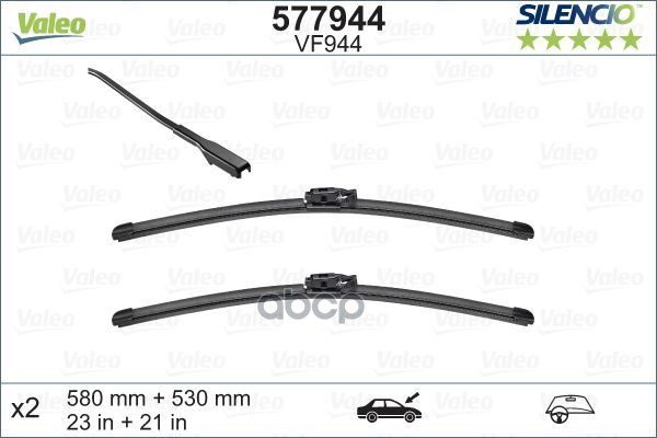 Щетки стеклоочистителя бескаркасные VALEO к-кт SILENCIO VF988 580+380 мм / SILENCIO FLAT BLADE SET