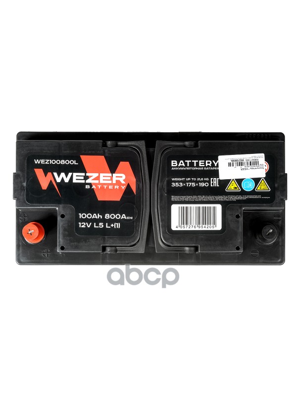 Бренд: WEZER, артикул: WEZ100800L, аккумуляторная батарея 100Ah 800A +слева 353/175/190.