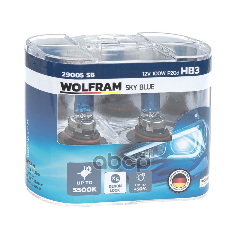 Наименование: Лампа 12V HB3 100W P20d WOLFRAM SKY BLUE WHITE LIG