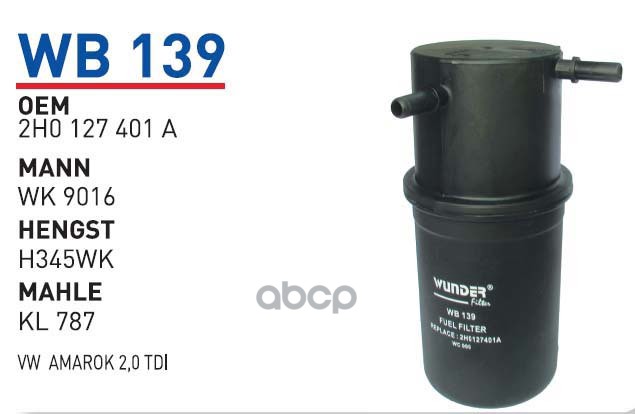 Бренд: WUNDER filter, артикул: WB139, Фильтр топливный VW Amarok mot.2.0TDI WUNDER FILTER WB139. |