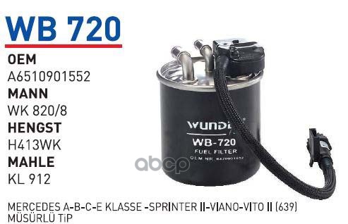 WUNDER filter WB720 Бренд: WUNDER filter, артикул: WB720, Фильтр топливный MB W212/W166/W639/Sprinter 2006-> WUNDER FILTER WB720.
