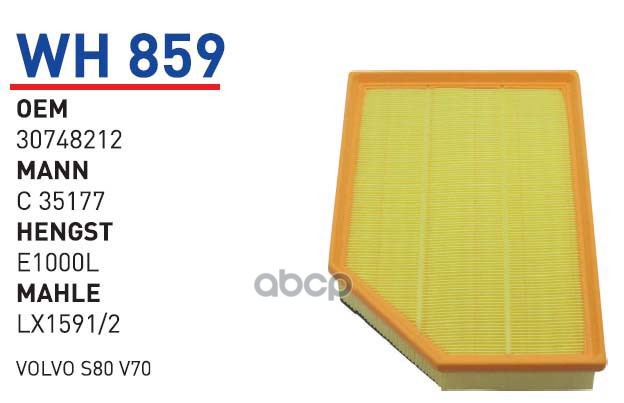 Купить запчасть WH859 ФИЛЬТР ВОЗДУШНЫЙ VOLVO S60S80V70XC60XC70 08- W с доставкой в Эль-Монте.