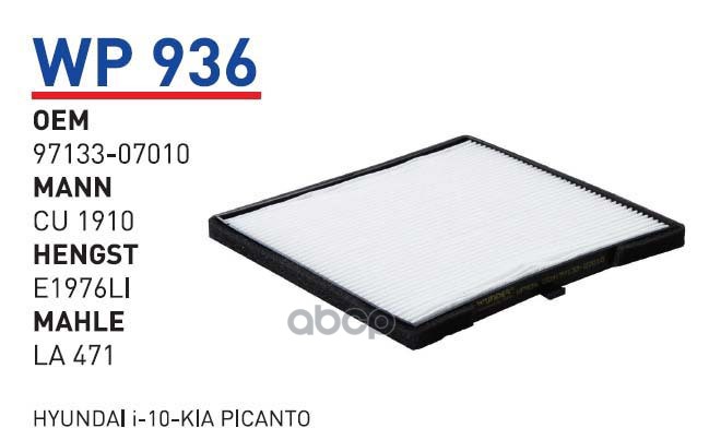 Купить запчасть WP936 ФИЛЬТР САЛОННЫЙ KIA PICANTOHYUNDAI I10 08- WUNDER с доставкой по России.
