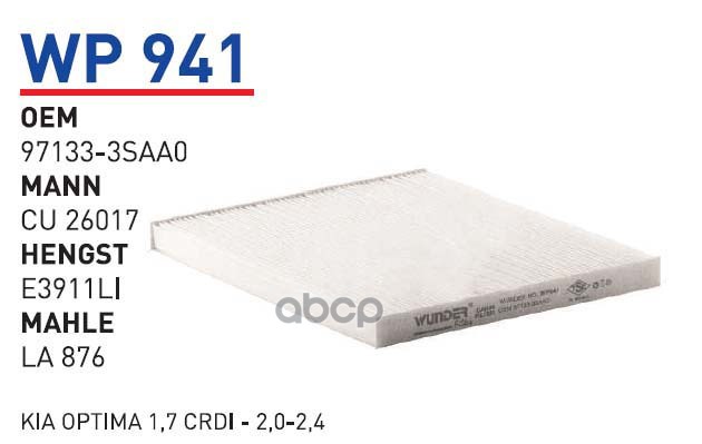 Купить запчасть WP941 ФИЛЬТР САЛОНА с доставкой по России.