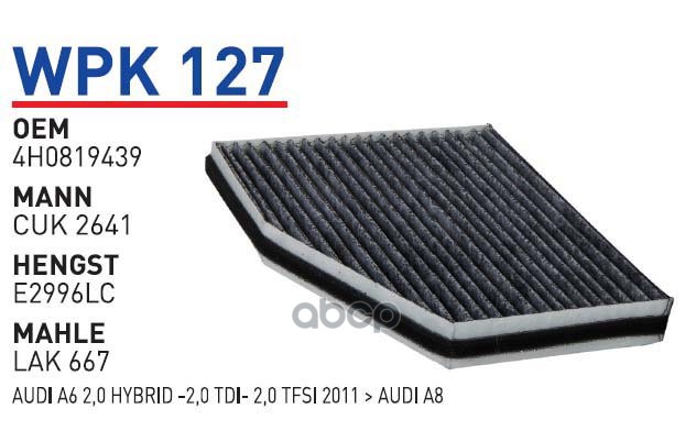 Купить запчасть WPK127 ФИЛЬТР САЛОНА УГОЛЬНЫЙ AUDI A6A7A8 2.02.83.04 с доставкой по России.