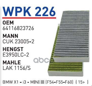 Купить запчасть WPK226 ФИЛЬТР САЛОННЫЙ УГОЛЬНЫЙ 2ШТ BMW 2-SERIEMINI CO с доставкой по России.