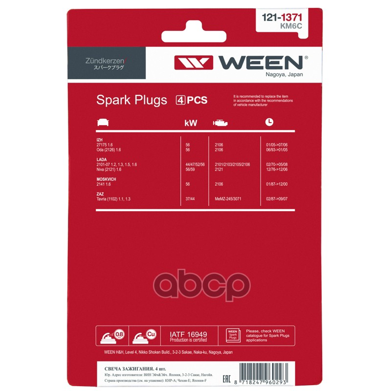 Бренд: Ween, артикул: 121-1371, Свечи WEEN 2101-07 (4шт) Нидерланды 121-1371 21013707000 1313 ;RC62LS ;7700824821 ;MS851192 ;0242235536 ;BP6ES ;Z12 ;BP6ESZ ;820549500 ;Z11 ;BP6EY ;W16EPU ;0003981310 ;22401W8991 ;22401AA040 ;1122 ;22401W8986 ;0025918110 ;1291700600 ;0419534040 ;MS851126 . |