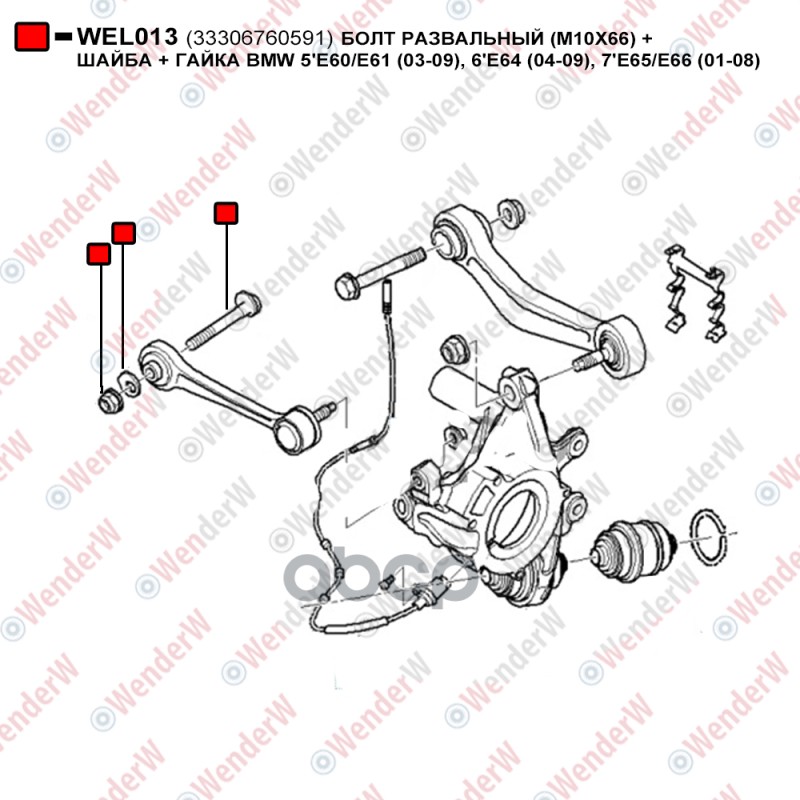 Купить запчасть WEL013 Болт сход-развальный с гайкой и шайбой Е39,38,60 с доставкой в Эль-Монте.